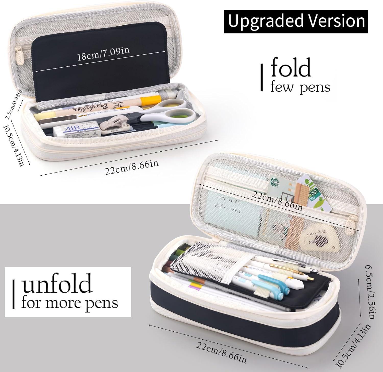 [High capacity]: It can store up to 100+ pens or pencils. Perfect for students who carry a variety of tool besides pens,such as rubber, sticker, ruler, etc.