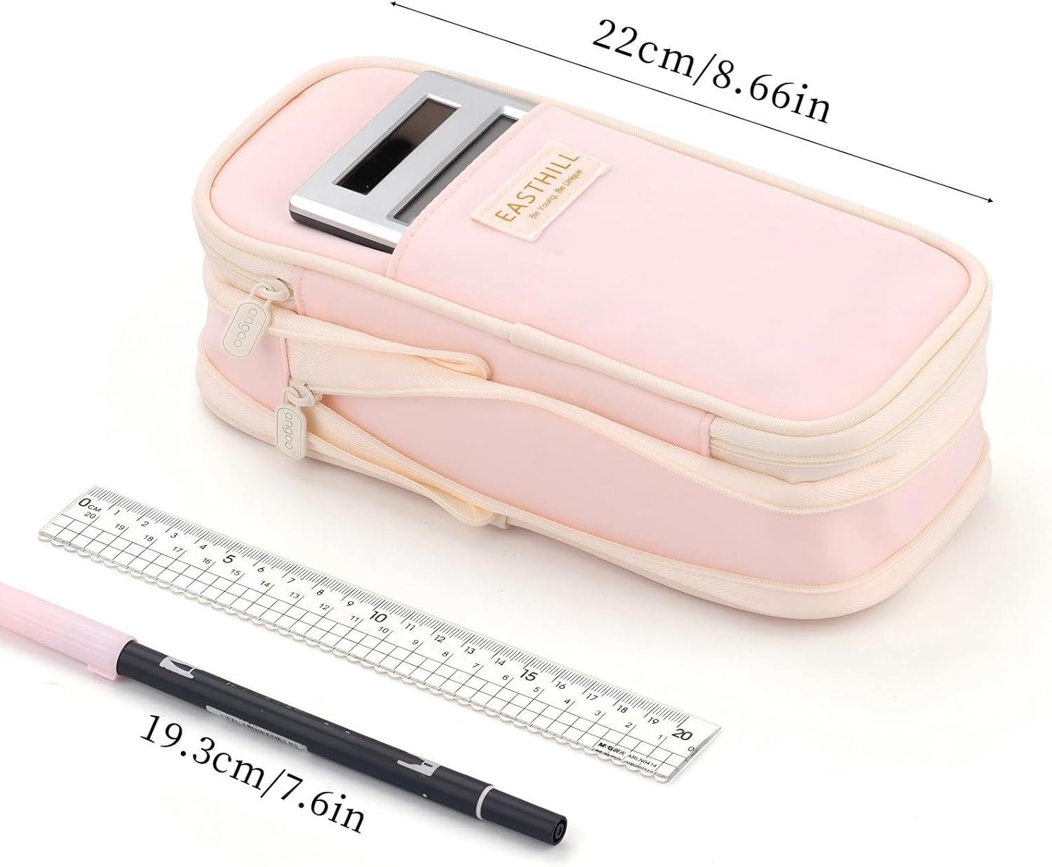 EASTHILL Big Capacity Pencil Case Large Pencil Pouch Stationery Pen Bag for Teen Girls-Navy(Pink)