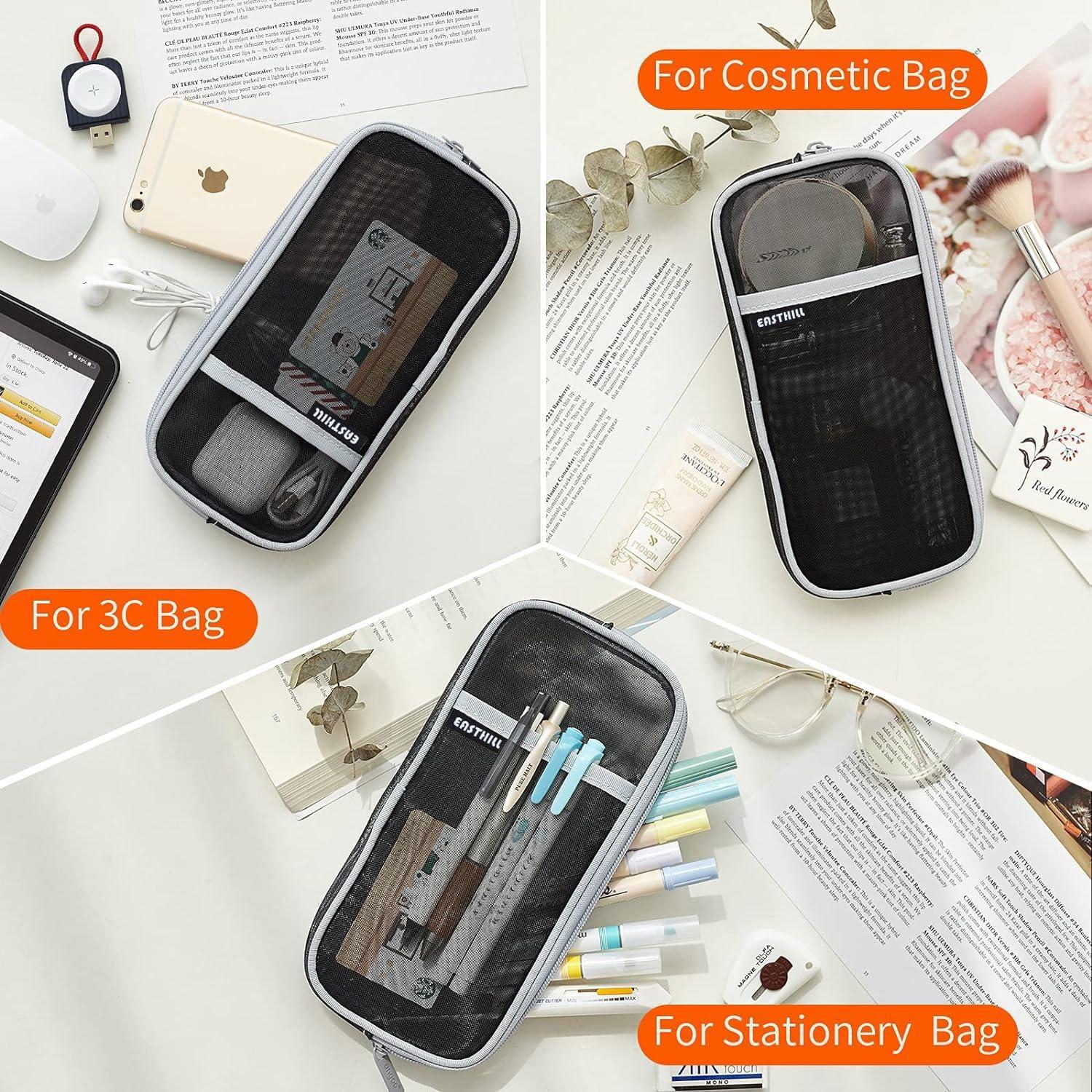 EASTHILL Grid Mesh Pen Pencil Case with Zipper Clear Makeup Color Pouch Cosmetics Bag Multi-Purpose Travel School Teen Girls Transparent Stationary Bag Office Organizer Box for Adluts(Purple)(Black)