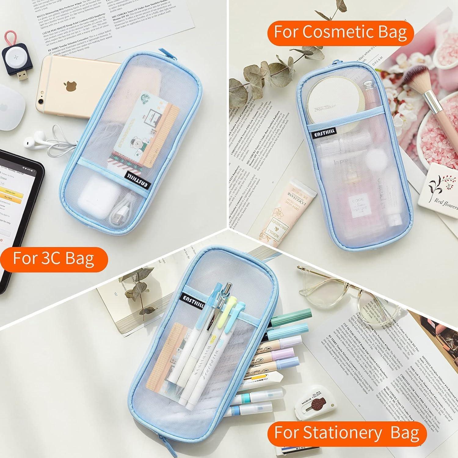 EASTHILL Grid Mesh Pen Pencil Case with Zipper Clear Makeup Color Pouch Cosmetics Bag Multi-Purpose Travel School Teen Girls Transparent Stationary Bag Office Organizer Box for Adluts(Purple)(blue)
