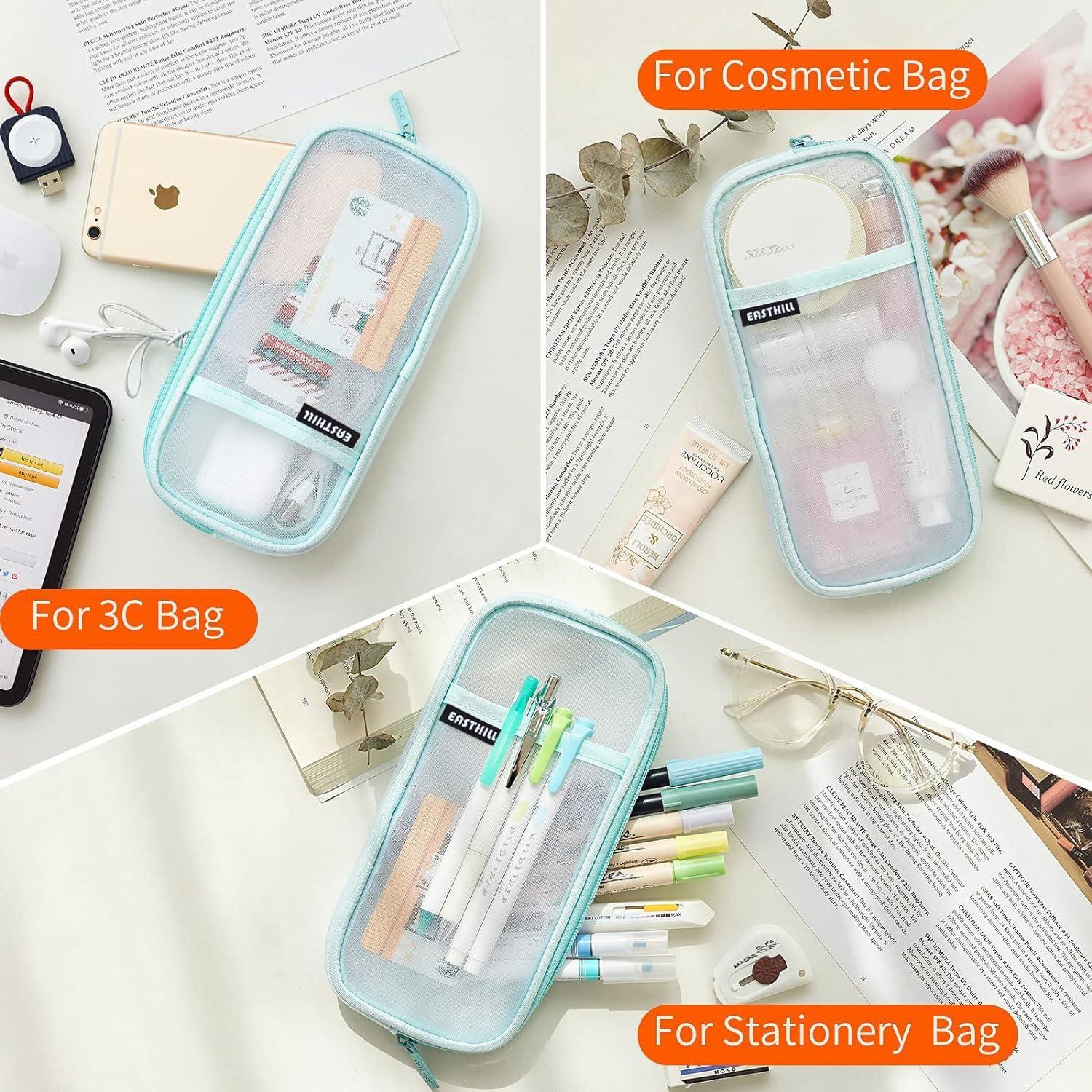 EASTHILL Grid Mesh Pen Pencil Case with Zipper Clear Makeup Color Pouch Cosmetics Bag Multi-Purpose Travel School Teen Girls Transparent Stationary Bag Office Organizer Box for Adluts(Purple)(Green)