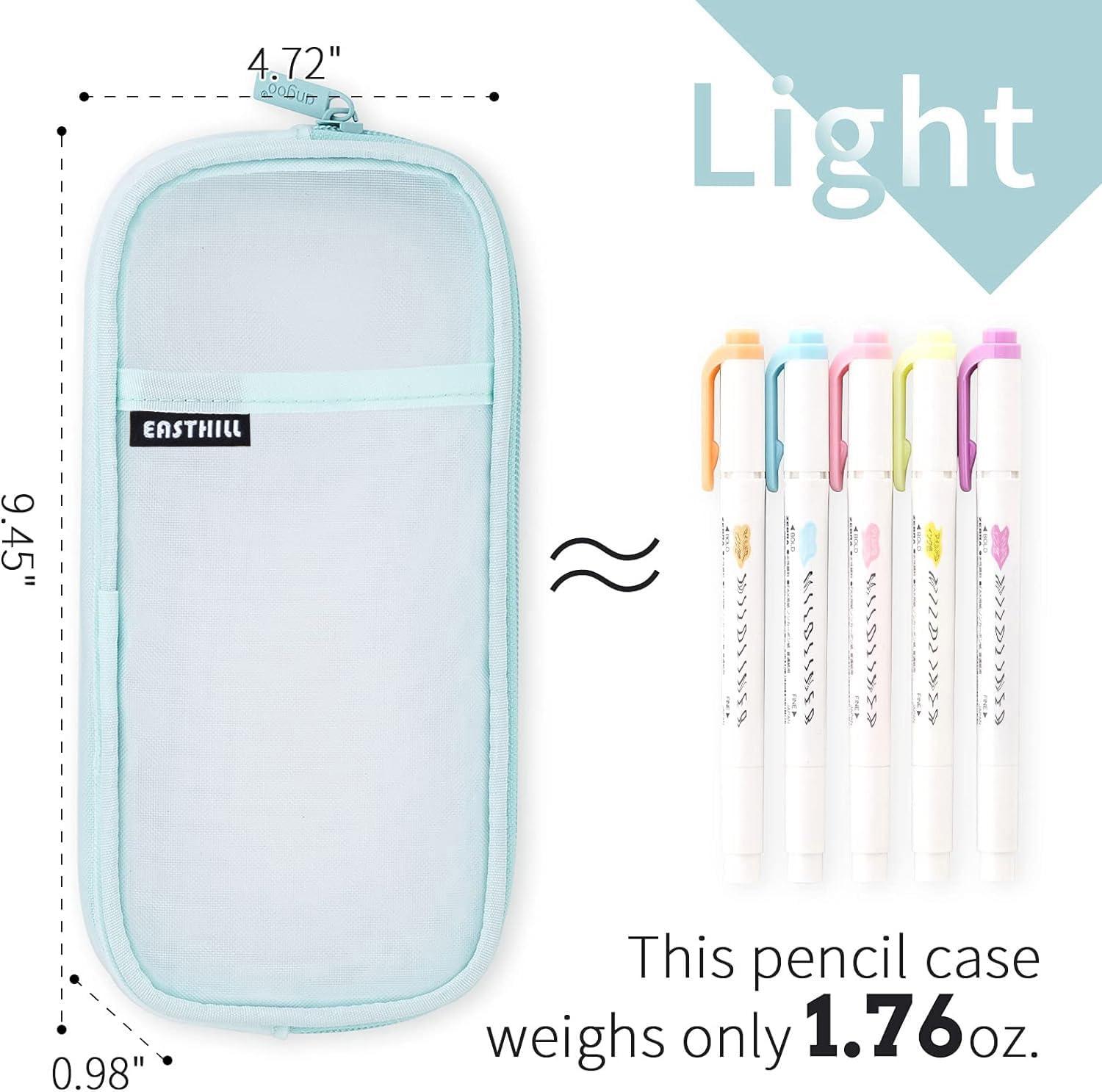 Compact Size and Storage: Measuring 9.45 x 4.72 x 0.98 inches, this pencil case has a medium capacity storage of 50 milliliters. It can store up to 20 pens or 35 pencils, as well as small stationery items in the mesh bag.