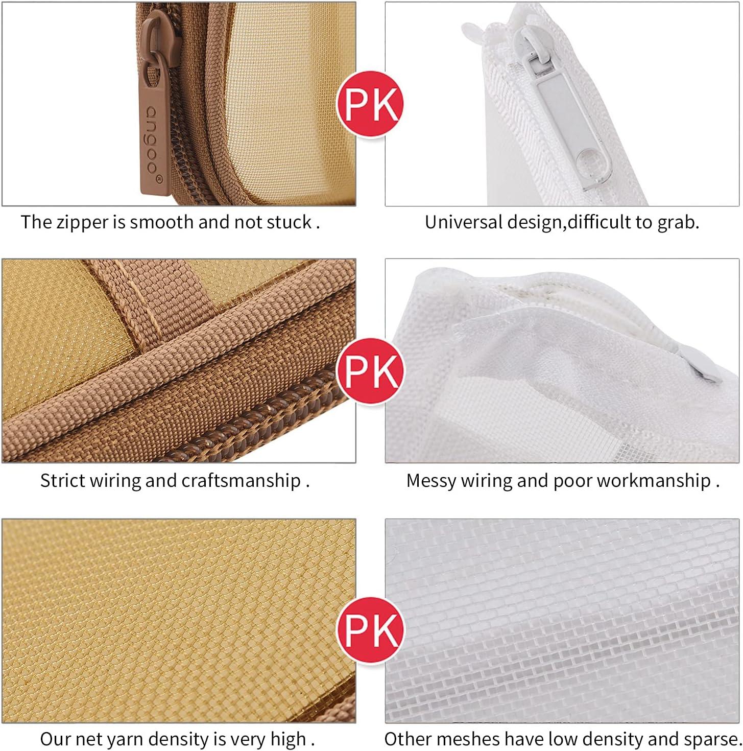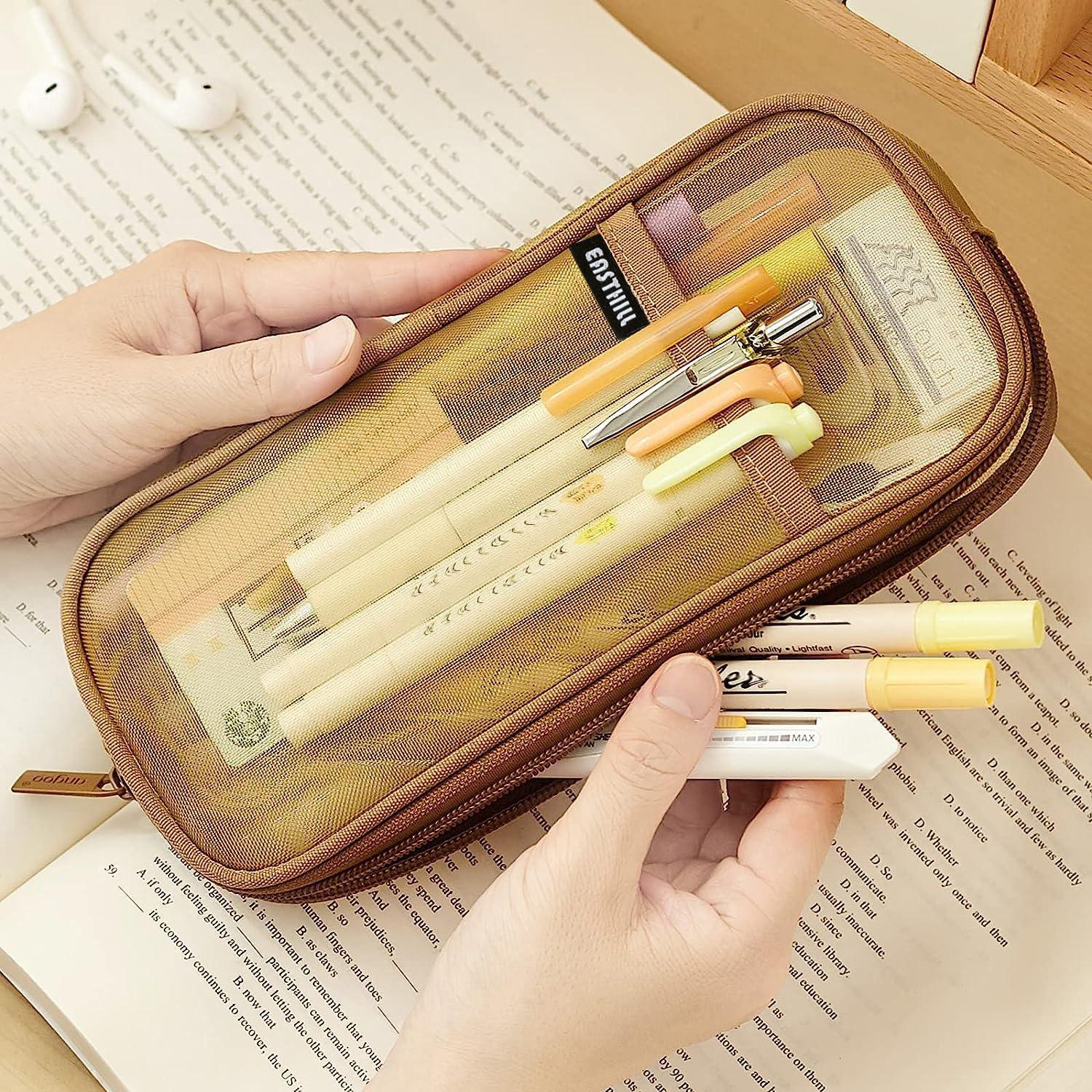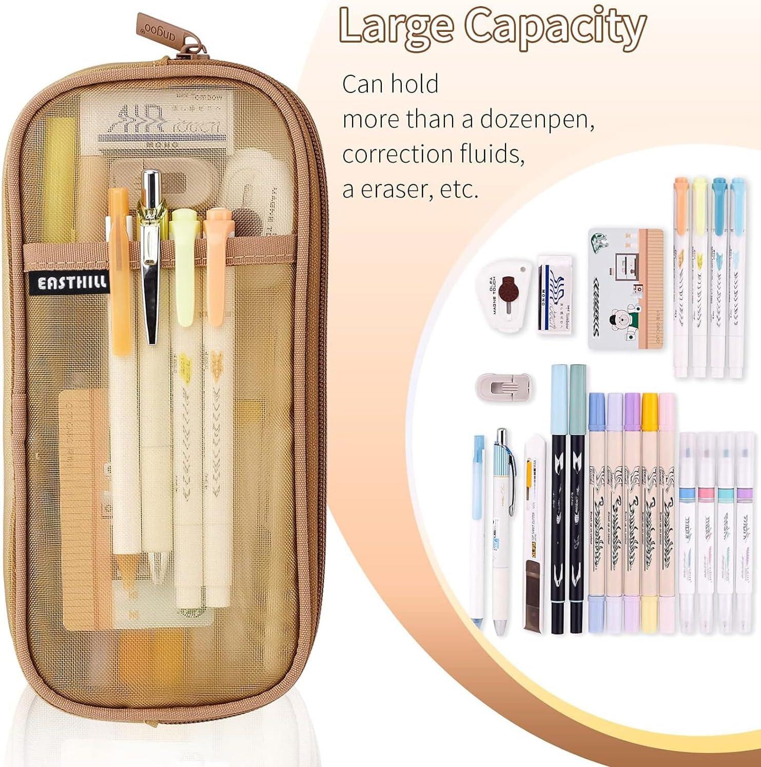 EASTHILL Grid Mesh Pen Pencil Case with Zipper Clear Makeup Color Pouch Cosmetics Bag Multi-Purpose Travel School Teen Girls Transparent Stationary Bag Office Organizer Box for Adluts(Purple)(Khaki)
